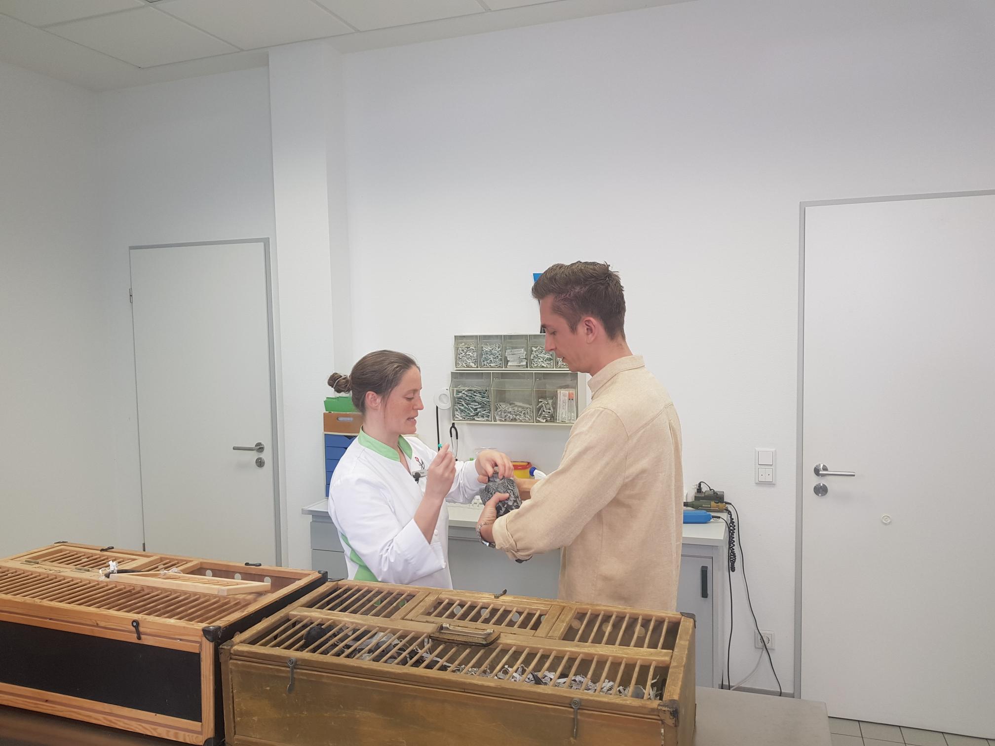 Außerdem kommt Eric Mayer, der Moderator, bei uns ganz schön ins Schwitzen. Er hilft Dr. Elisabeth Peus bei der Behandlung von verletzten Tauben, die Greifvögeln zum Opfer gefallen sind, bei Routineuntersuchungen und bei Impfungen.